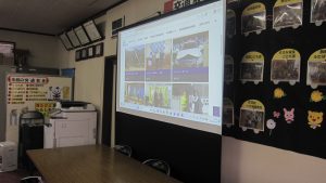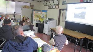 スクリーンに映し出されたホームページを視聴中の役員の皆様 「ホー」「うーん」「初めて見るわ」と〝視線 集中〟