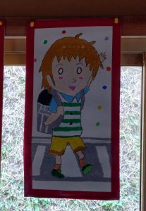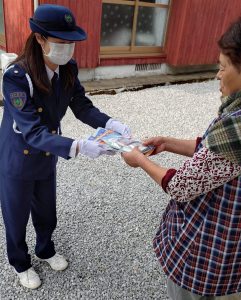 秋山地区に高齢者宅訪問指導に行きました。交通事故防止、反射材の説明をして帰ろうとすると「絵を見ていって」と言われついて行くと・・・