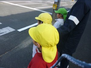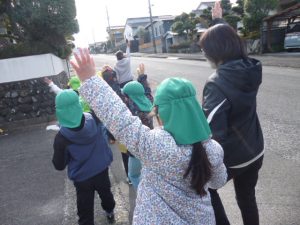 ゆりかごWECわかくさ保育園 今日はゆりかごWECわかくさ保育園 年長さんの 交通教室を行いました! とっても寒かったですが子どもたちは元気いっぱい頑張ってくれました☆ まずは指導員の説明を聞いて一緒に練習しましょう♪ みんなで右、左・・・ 指導員のお手本を見た後は、いよいよ子どもたちが渡ります! ドキドキしながら、上手に渡ることができました! よく頑張りました! 終わった後は保育園まで、安全を確認しながら一緒に帰りました。 ドライバーの皆さんも交通教室へのご協力ありがとうございました。 横断歩道で歩行者を見かけたら、渡らせてくださいね。いつも優しい運転をありがとうございます!
