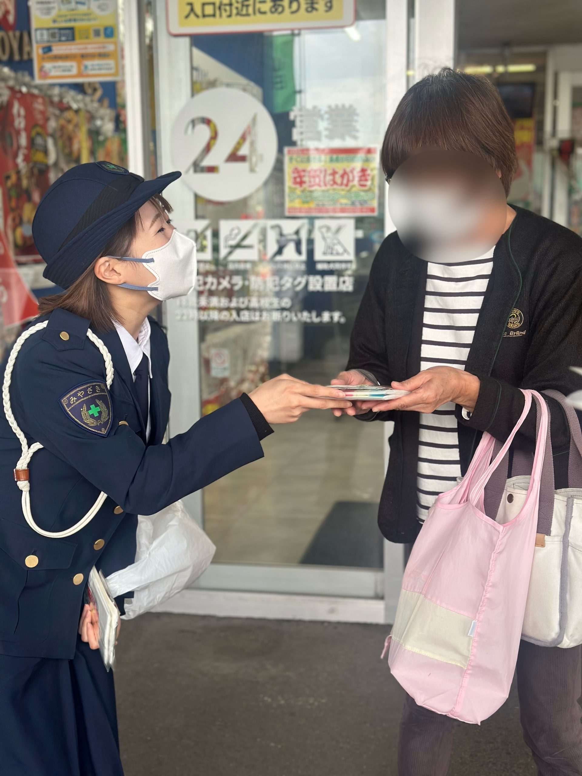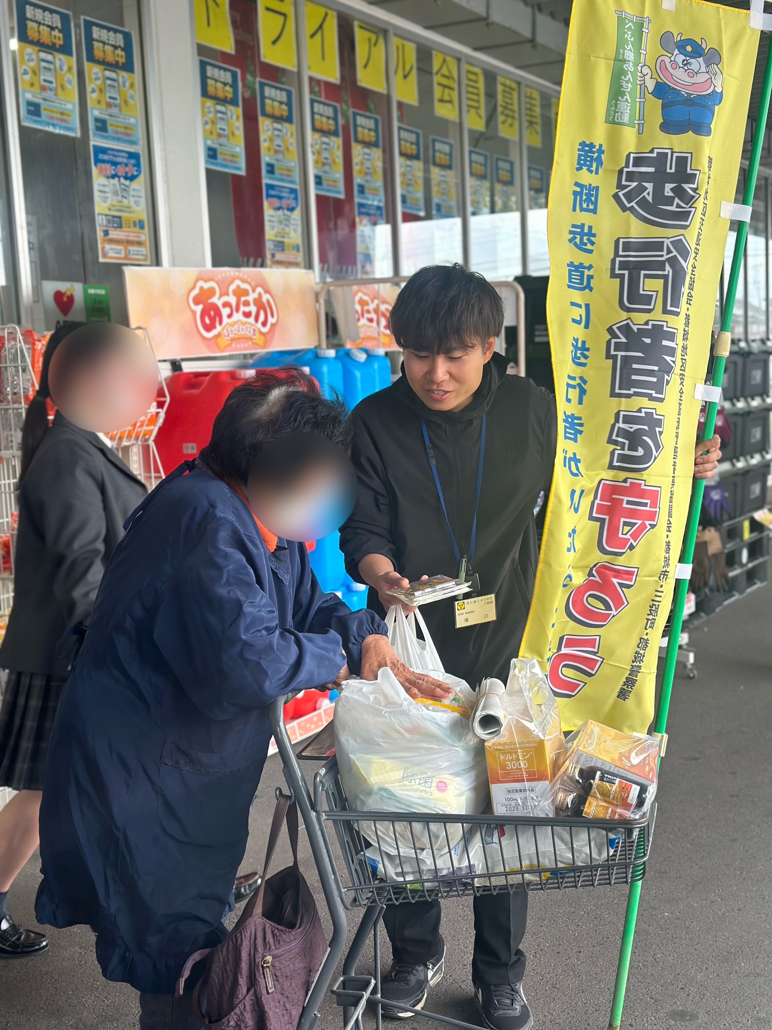 買い物帰りのお客さんに飲酒運転根絶を呼びかけました。