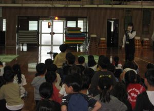 運動場での実施を予定していましたが、雨のため体育館で行いました☂️