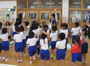 1・2年生は幼稚園児のお手本になろうと頑張り、
