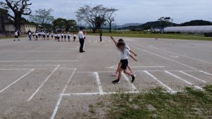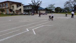 運動場で自転車の乗り方と横断歩道の渡り方の練習をしました。