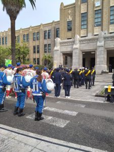 今日は県庁前で出発式が行われました。4月1日から自転車「青切符」制度導入ということもあり、宮崎農業高等学校の自転車部のみなさんが、自転車のルール遵守を宣誓してくれました。その他にも、こども・歩行者優先や飲酒運転・「ながらスマホ」の根絶が重点テーマとなっています。
