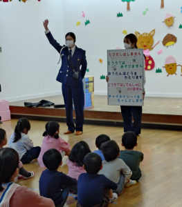 どちらの園も今年度3回目の交通教室です。園児みんなが前回よりさらに上手に横断歩道を渡れるようになっていました。とても嬉しかったです!!