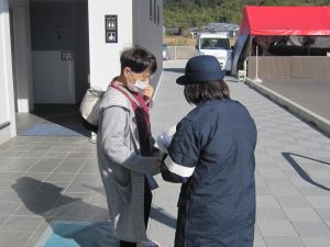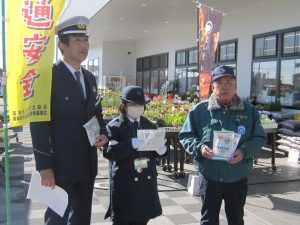 12月4日、新富町の「こゆ農畜産物直売所ルーピン」にて、小澤会長が参加され、交通安全指導員と共に買い物客へ対して、安全運転の呼びかけと、JAみやざき児湯地区本部様から寄贈を賜り