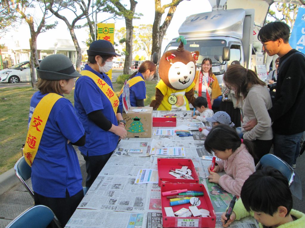 キャンペーンでは、宮崎県警察本部のセーフティフェニックス号による運転シミュレータ体験、JAFの「シートベルトコンピンサー」による事故衝撃体験やこども免許証の作成コーナー、あいおいニッセイ同和損保の反射材作成教室などを行いました。