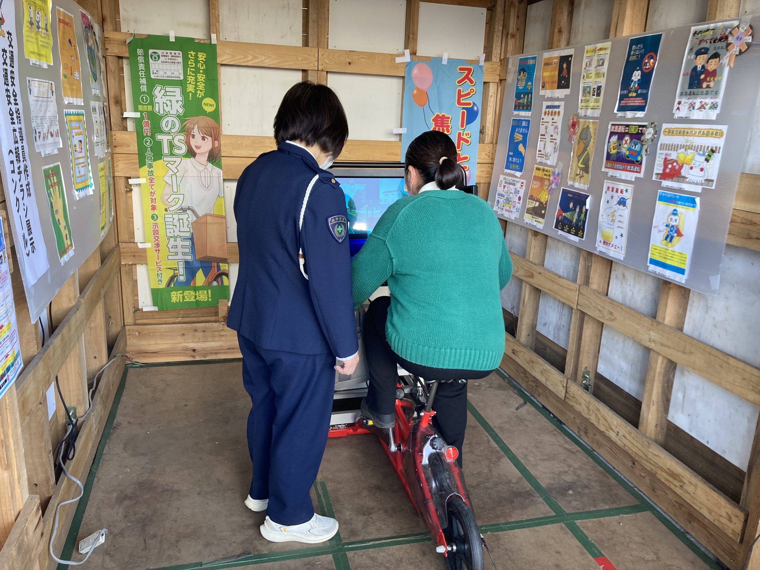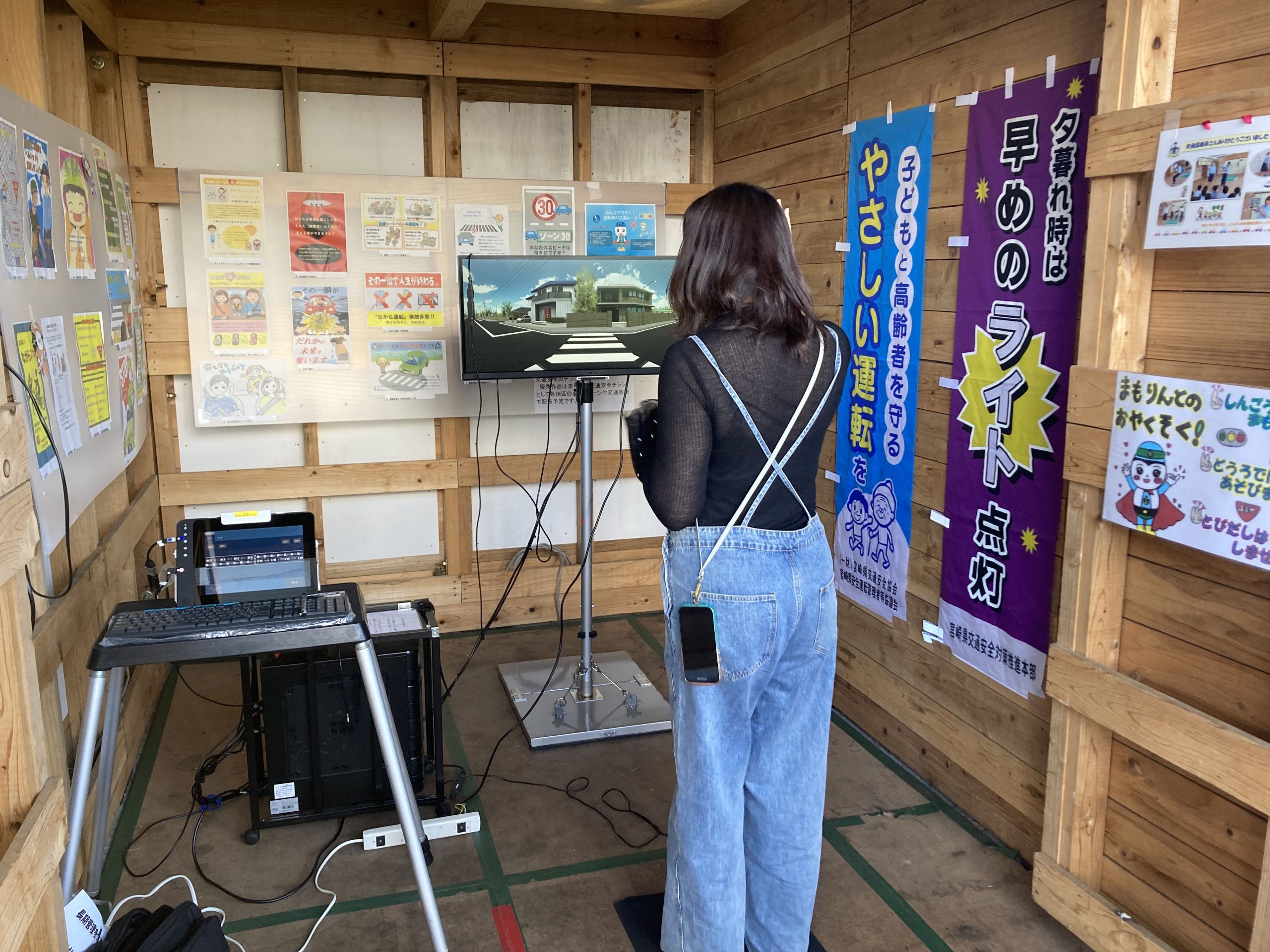 宮崎北地区・高岡地区合同で腹話術による交通安全教室や自転車と歩行シミュレータの体験や反射材の配布など来場者の方に交通安全を呼びかけました。
