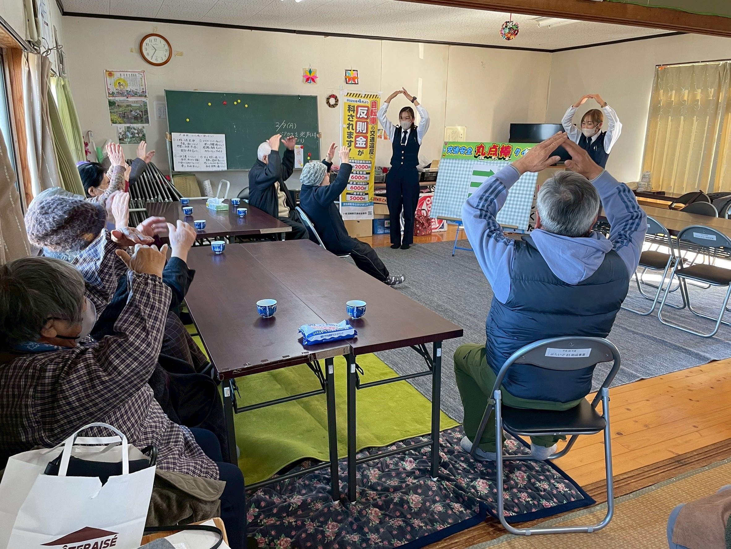 新作の教材『交通安全丸点棒クイズ』を使って 体操・交通安全に関するクイズをしました。