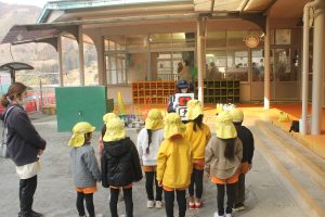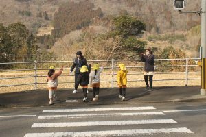 2月24日(火)日之影町 しいの実保育園の幼児交通教室をおこないました。保育園を出発し、近くの信号のある横断歩道まで歩いていきました。途中、カーブミラーを見ないといけない場面があり、車がきていないかの確認もできていました。横断歩道を渡る時も、大きな声でしっかり確認しながら渡ることができました。最後に警察官からのお話をしていただき、年長組さんに手作りプレゼント🎁をお渡ししました。
