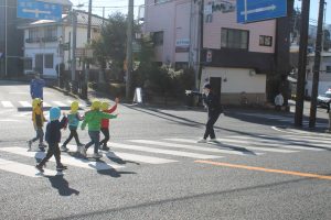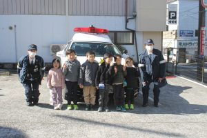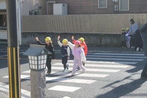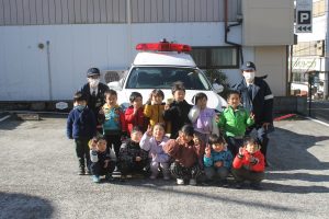 幼児交通教室 中央保育園 2月4日(水)高千穂町中央保育園の交通教室をおこないました。城山交差点の横断歩道を4回渡る練習をおこない、しっかり左右確認と信号確認をして渡ることができました😊最後に警察官からお話をしていただき、年長組さんに手作りプレゼント🎁をお渡ししました。