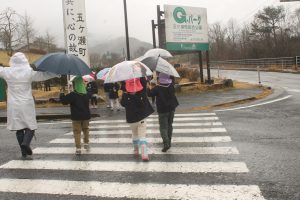 2月27日(金)五ヶ瀬町 五ヶ瀬中央保育所の幼児交通教室をおこないました。あいにくの雨でしたが、年長組さんは傘をさしての練習となりました。歩いて10分ほどかかる信号機のある横断歩道では大きな声でしっかり確認をして渡ることができました😊。最後に警察官からのお話をしていただき、手作りプレゼント🎁をお渡ししました。