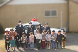 2月19日(木)高千穂町 旭ヶ丘保育園の幼児交通教室をおこないました。保育園近くの信号機のある横断歩道を、ドキドキしながら大きな声で確認して渡ることができました。手作りプレゼント🎁を渡したあと、最後に警察官からお話をしていただき、パトカーと白バイの🚔🚨見学をさせていただきました😊