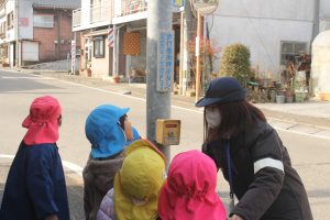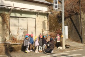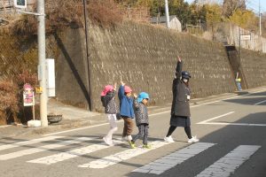 1月30日(金)五ヶ瀬町鞍岡保育所にて3回目の幼児交通教室をおこないました。今年は新しいコースを年長・年中組さんと一緒に歩き、横断歩道を渡る練習をしました。しっかり手を挙げて自分の目で確かめながら渡ることができていました。気温も2℃と寒い中よく頑張っていました😊最後に警察官からお話をしていただき、プレゼント🎁をお渡ししました。