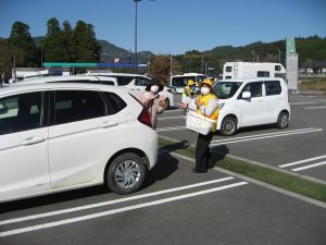 12月7日(日)午前11時から、日向市東郷町の道の駅とうごうにて、日向地区交通安全協会女性部による街頭キャンペーンを実施しました。