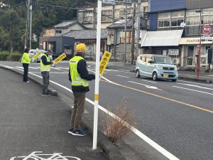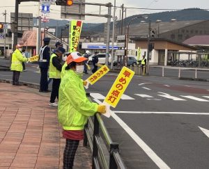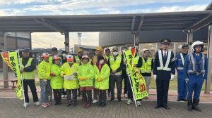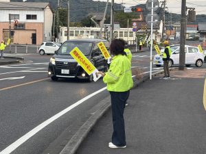 早めのライト点灯 ピカピカ運動キャンペーン 11月18日(火曜) 午後5時から 串間駅前交差点で「早めのライト点灯 ピカピカ運動キャンペーン」を行いました。 串間地区交通安全協会、串間市交通安全対策協議会、串間警察署、地域交通安全活動推進員など総勢30名参加 日没が迫る中、ハンドポップを片手にライト点灯をアピール、寒い中本当にご苦労様でした。