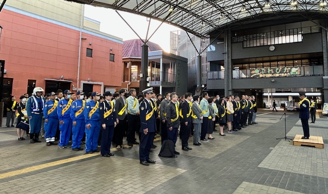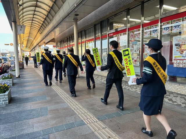 のぼりや横断幕を持っての呼びかけ📢や、アーケード街を🚶🏽‍♀️‍➡️🚶🏽‍➡️🚶🏽‍♂️‍➡️歩いて、市役所職員交通安全会約300名が一体となった活動です✨