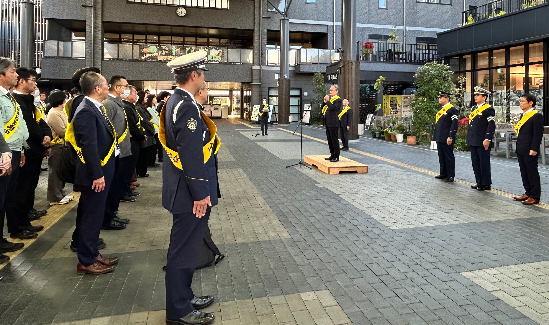 まちなか広場にて都城市役所職員交通安全会の皆さんと街頭啓発を実施しました。