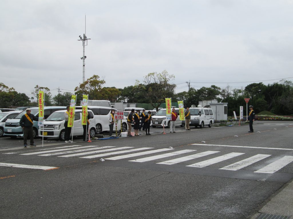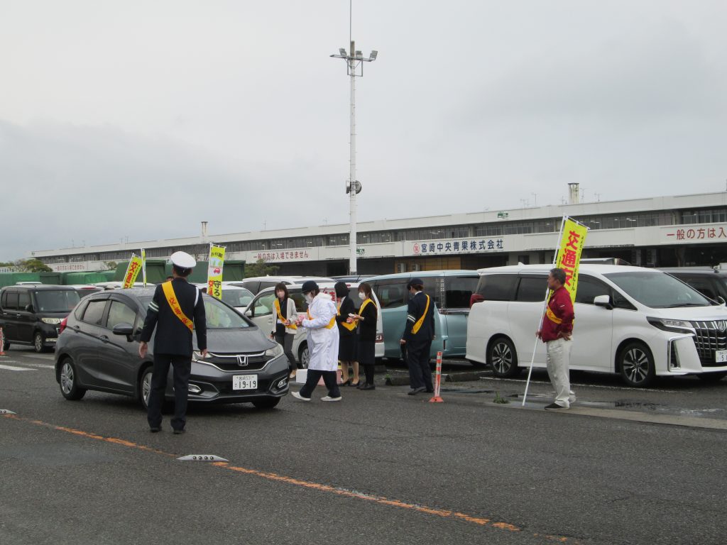 4月7日、宮崎市中央卸売市場で「春の全国交通安全運動」のキャンペーンを行いました。