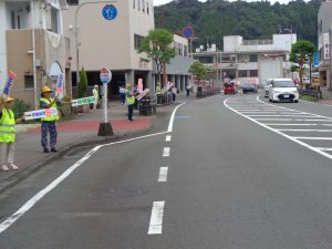9月22日(月)に、油津地区においてハンドプレートを使用して、交通安全啓発を行いました。