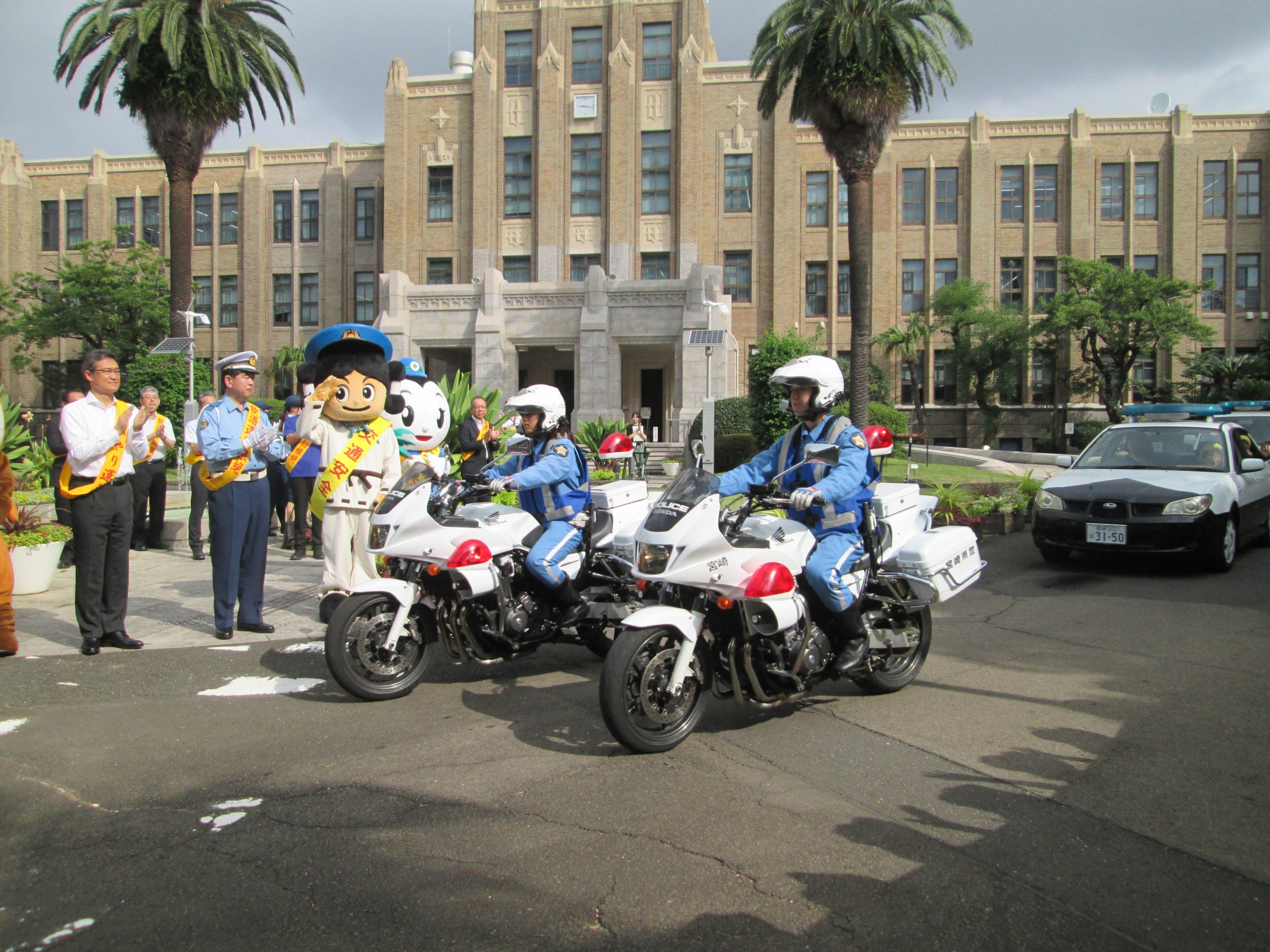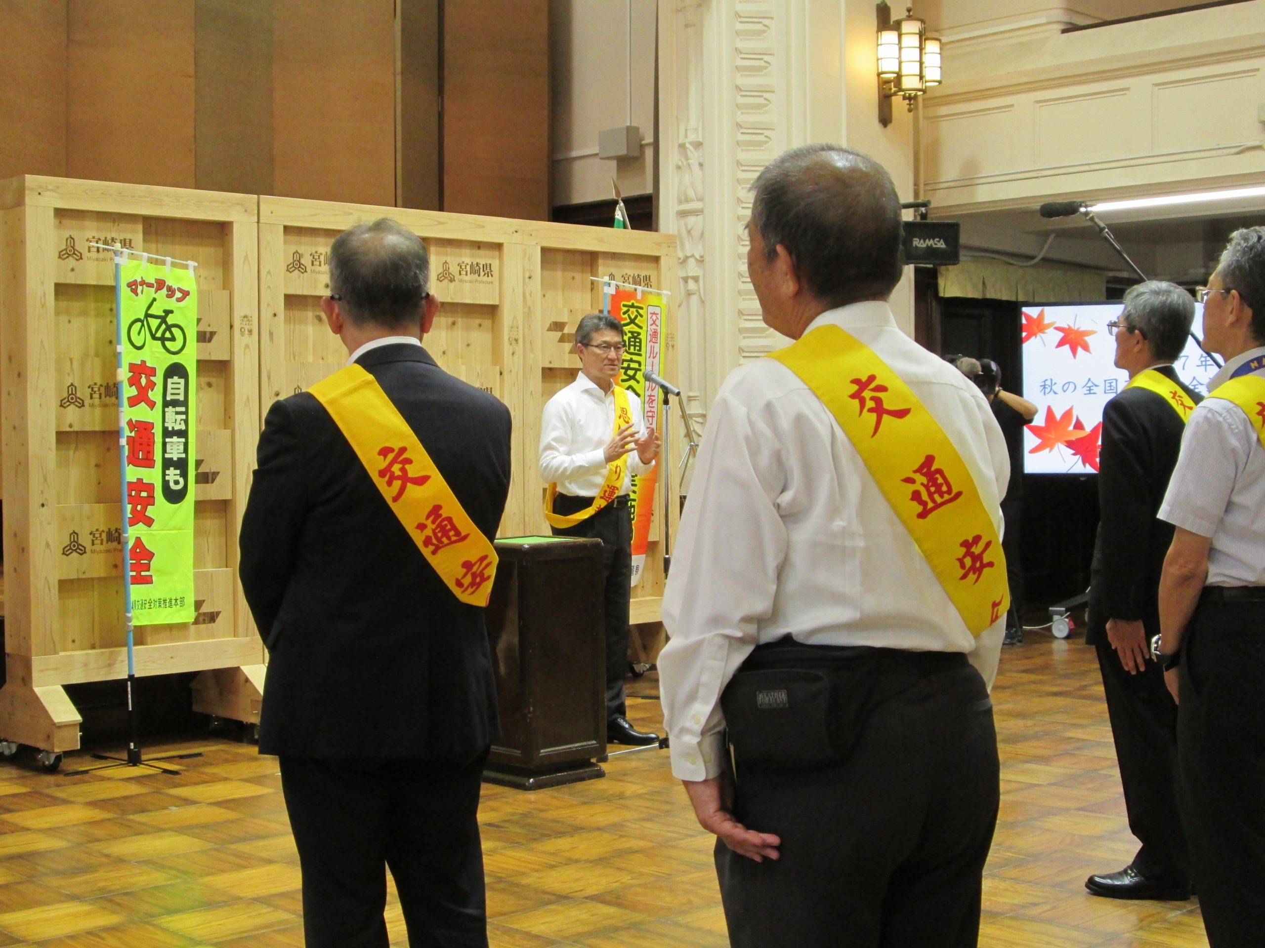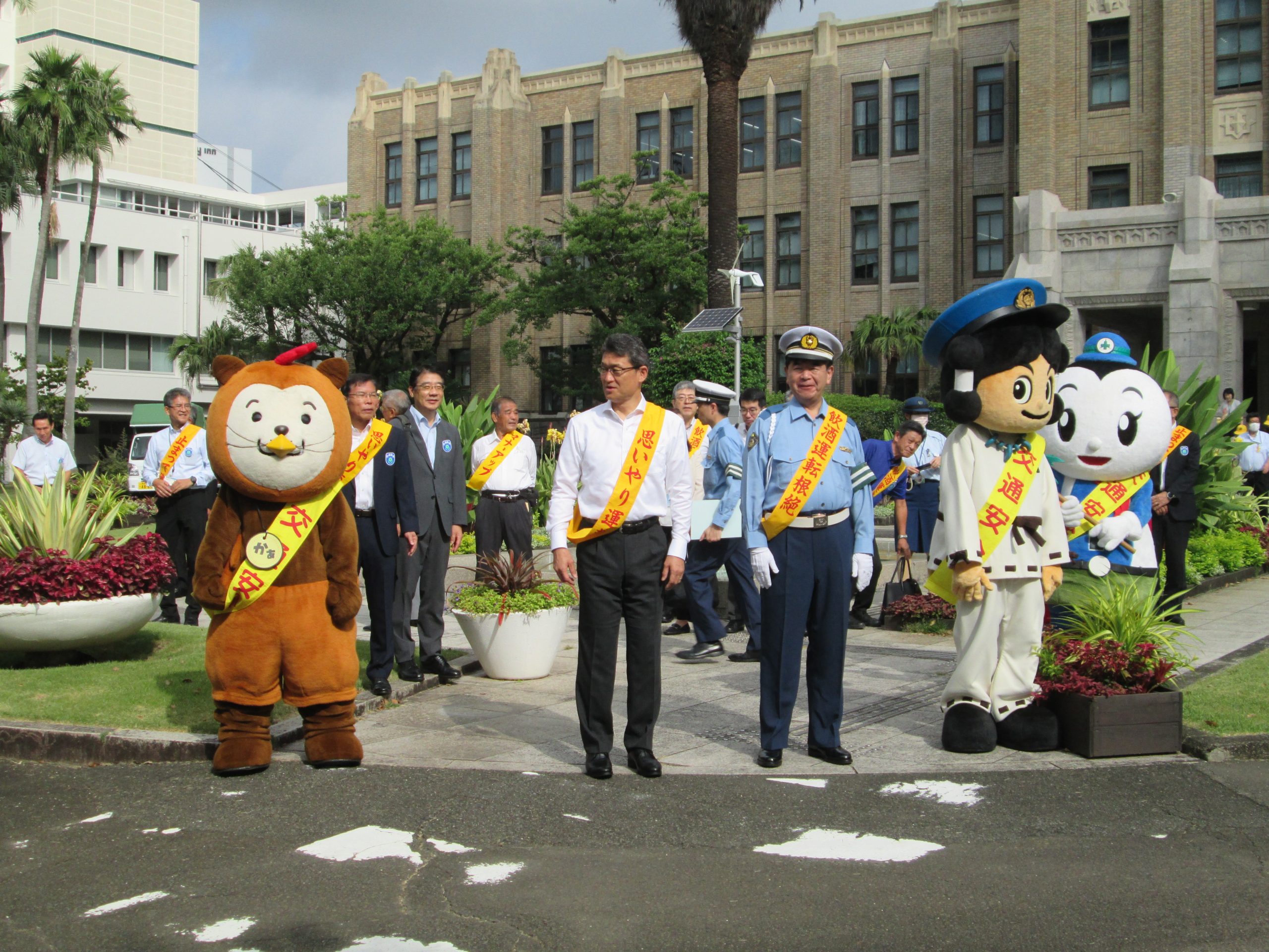 9月19日、宮崎県庁で「秋の全国交通安全運動開始式・交通安全啓発キャラバン隊出発式」が実施されました。