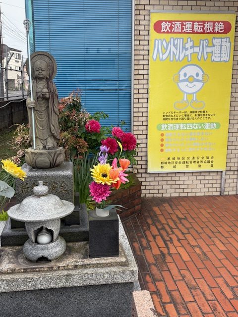 都城地区交通安全協会の玄関横に交通安全のお地蔵様
