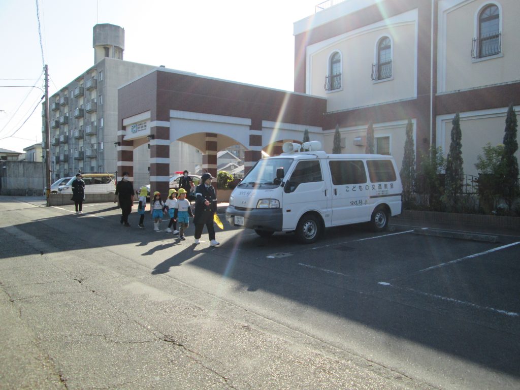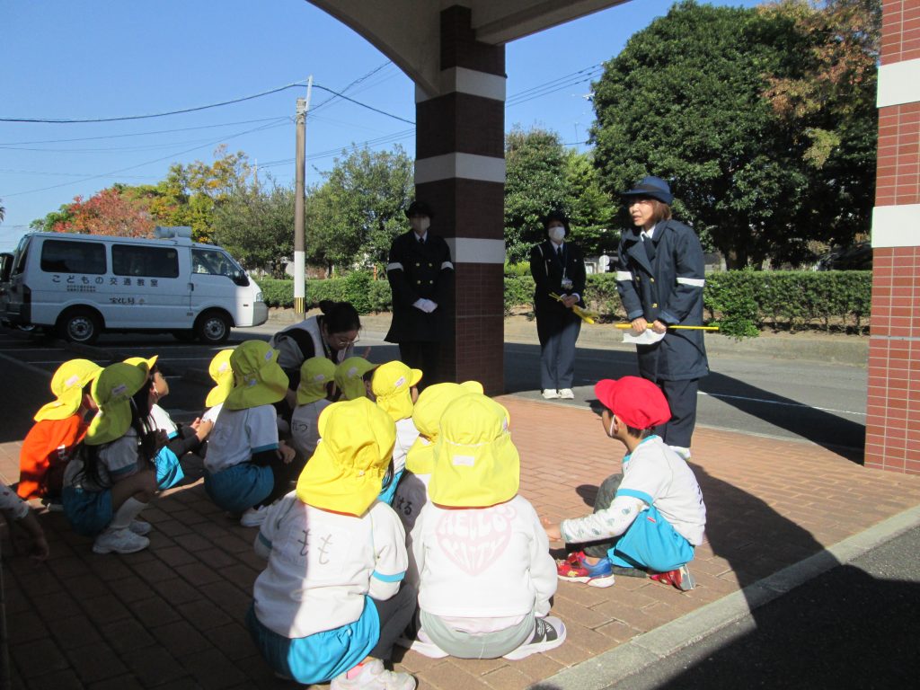 11月26日、宮崎市内の保育園で、周辺の道路での歩き方や横断歩道の渡り方などの実演指導を行いました。