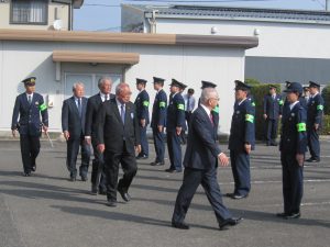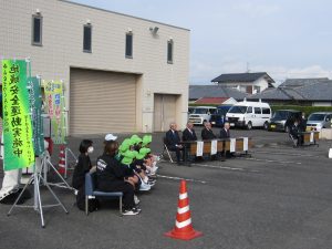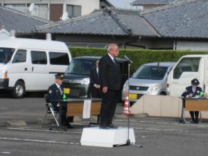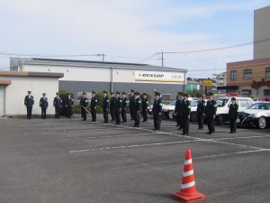 12月2日、高鍋警察署北側駐車場にて年末年始特別警戒隊発隊式があり、高鍋地区交通安全協会 小澤会長が来賓挨拶をされ、その後、服装点検・車両点検と続き、車両部隊が出発しました