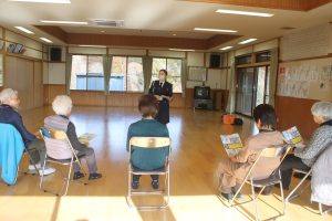 1月20日(火)高千穂町下押方公民館にて高齢者交通教室をおこないました。寸劇や横断歩道の渡り方、曲に合わせて体操をしました😊ありがとうございました。