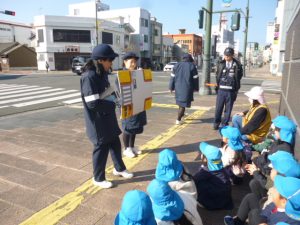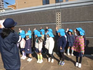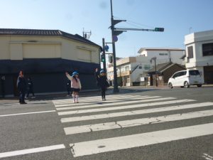 近くの交番のおまわりさんが2名来られて一緒に渡り方の練習と見守りをしてくださいました☺