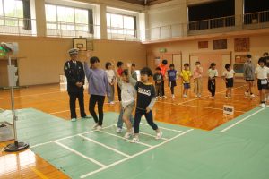 4月20日(月)五ヶ瀬町 鞍岡小学校にて交通教室をおこないました。体育館で仮設コースを作り横断歩道の渡り方の練習をした後、下校時間に合わせ小学校下にある横断歩道を渡る練習をしました😊。