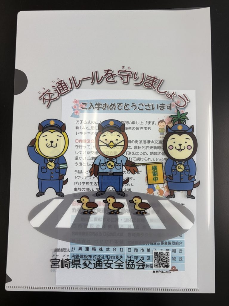 入学式当日には、新入学児童の皆さんへクリアファイルをお届けする予定です。