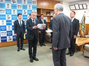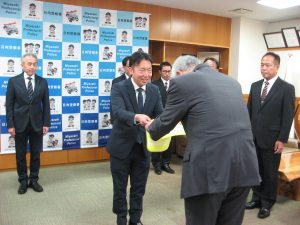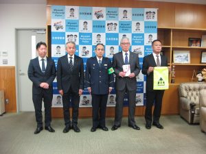 県北地域を中心に遊技場などを展開されている 西の丸様 より、日向地区(日向市・門川町・美郷町・諸塚村・椎葉村)の小学校に入学する新1年生全員分のランドセルカバー 695枚を、日向地区交通安全協会へご寄贈いただきました。