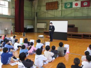 4月20日(月)、午前は松尾小学校、午後は椎葉小学校で交通安全教室を行いました。
