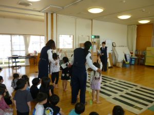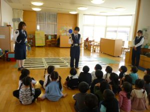 🐟緑ヶ丘保育園🎀 緑ヶ丘保育園で交通教室を行いました! 今年は人形劇を子どもたちに見てもらいます🥰 人魚姫が王子様のおうちまで安全に行けるのか!?というお話です…😊 楽しく見た後は渡り方のお勉強です! みんな上手に横断歩道を渡ることができました。