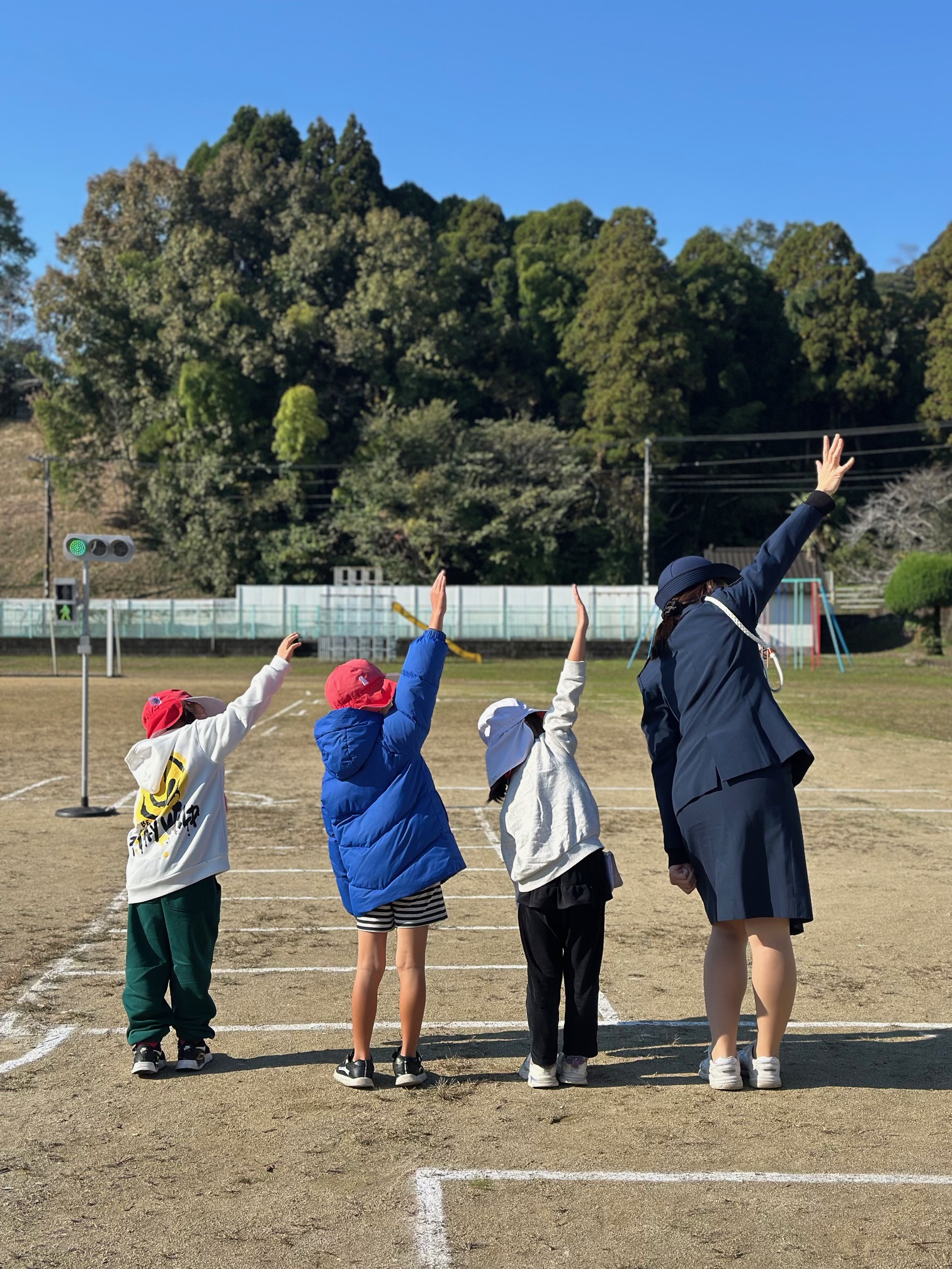 木之川内小学校で交通教室を行いました。1、2年生は横断の練習を