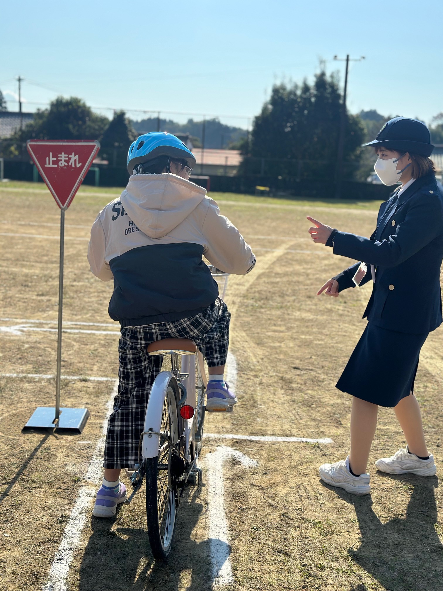 3,4,5,6年生は自転車での安全確認方法等を練習しました。