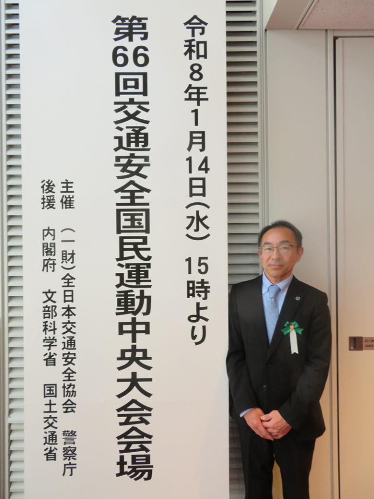 令和8年1月14日に東京都内で実施されました第66回交通安全国民運動中央大会において、交通安全に寄与された全国の個人・団体が交通栄誉章緑十字金章・銀章などを受賞されました。本県においては、下記の方々が受賞されました。
